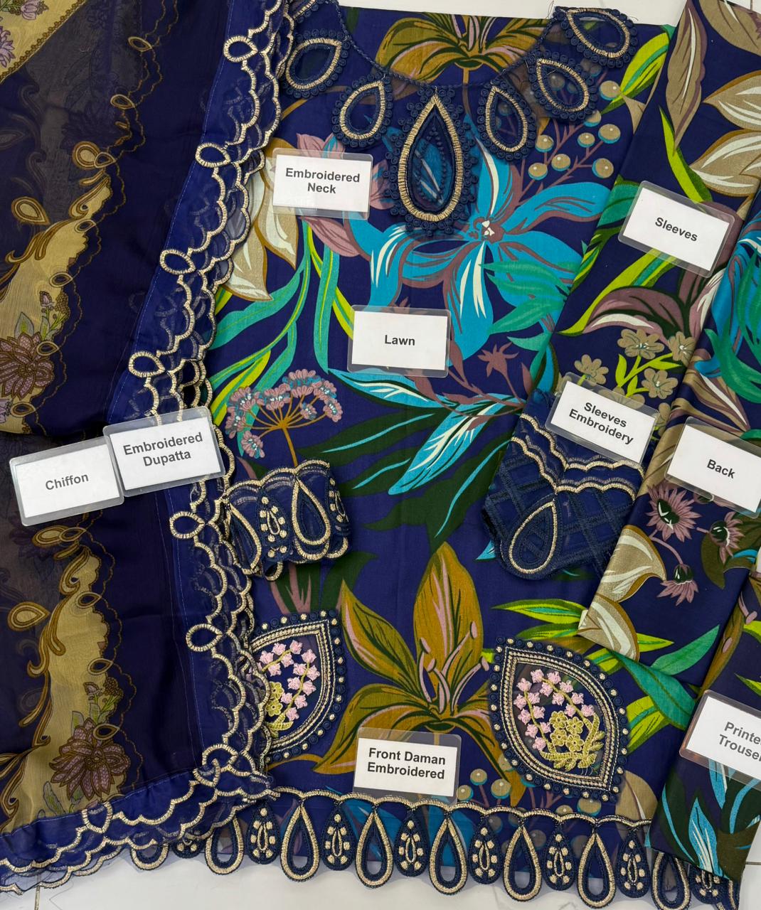 * Chiffon Printed Dupatta With 4 Sided Embroidered Laced