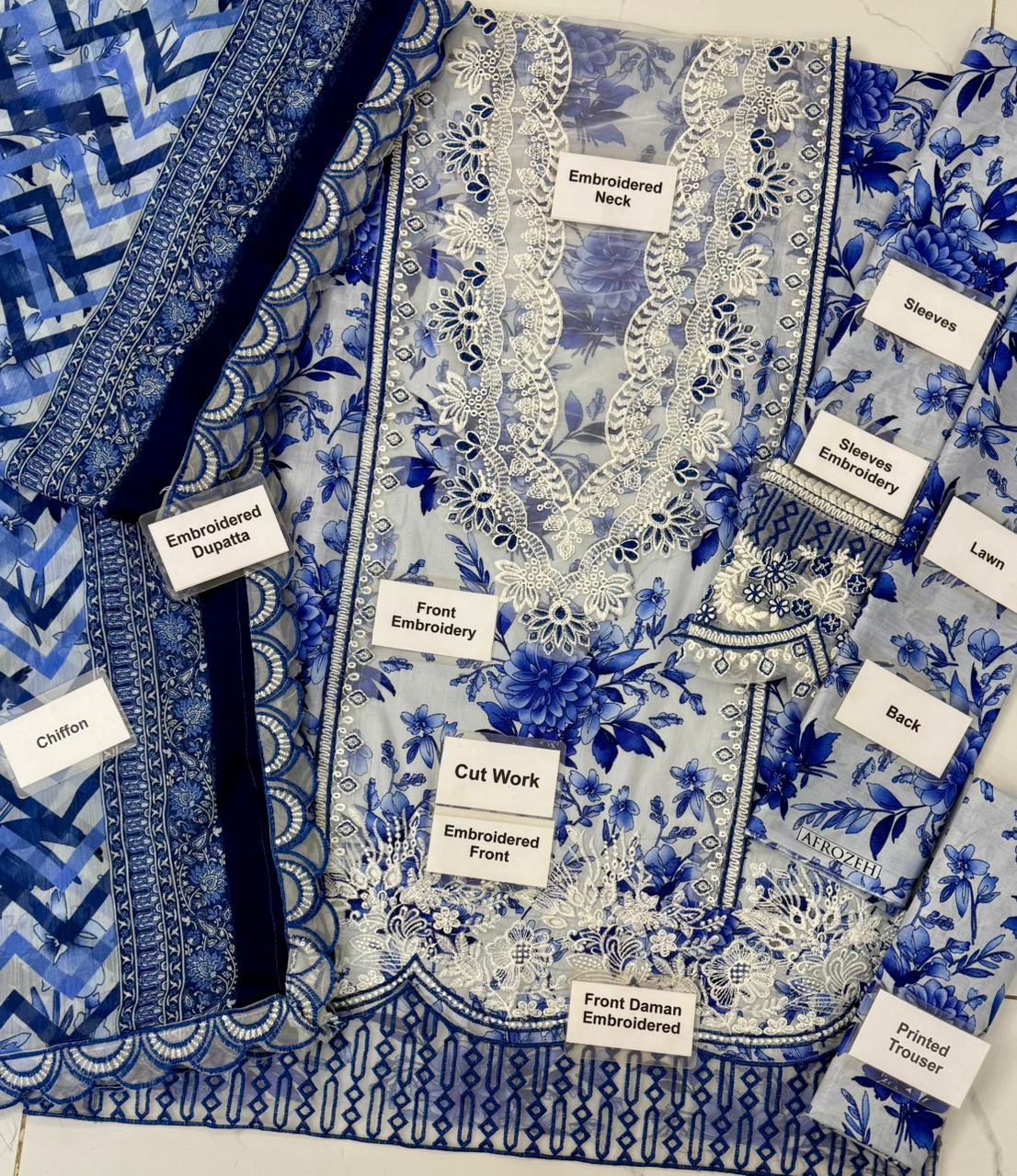 * Chiffon Printed Dupatta With 4 Sided Embroidered Laced